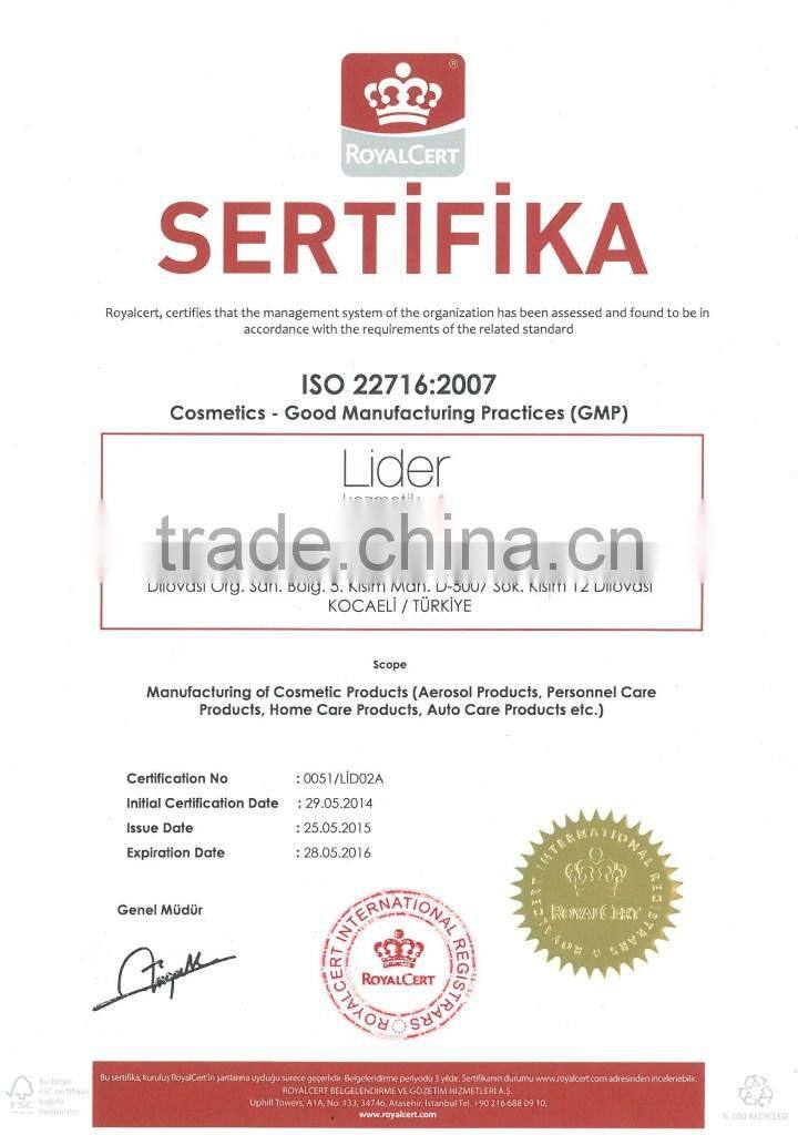 Since 1978, LIDER KOZMETIK has deservedly grown to become one of the worlds most prominent producers of high quality AEROSOL product's for various categories covering Personal Care, Home Care and Automobile Care